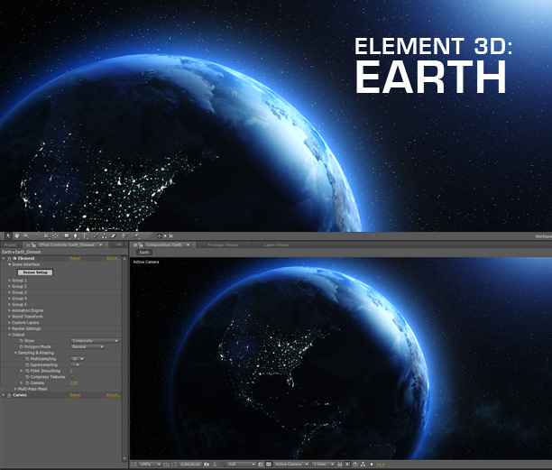 To customize the Earth, you can open the Element 3D layer and turn down the illumination map to shut the lights off.