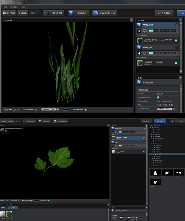 Using Element 3D and the multi-object system, I was able to load 3D plants and animate the rotation to fake the wind blowing. To get the plants to grow where I wanted I also used a layer for the replicator where I wanted plants to grow.
