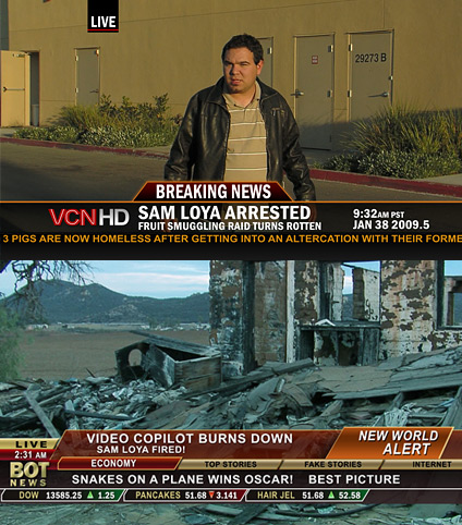 Here are some free news templates I created for After Effects CS3. Now you can have realistic news crawlers that don't make your movie look fake. Just be careful what you write, people will believe anything.