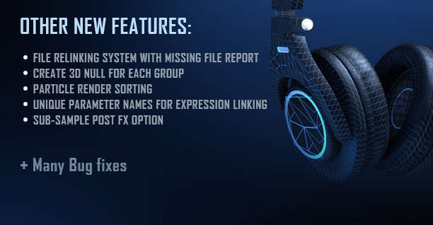 Previous Projects with Expressions: Some Property names have changes which may cause expression links to break. However this change will help avoid expression conflicts in the future now that every parameter have unique names. If necessary all older versions of Element 3D are available in the download section if you need to revert to an older version temporarily.