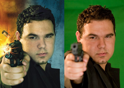 The above example shows how bump mapping can have a dramatic effect on a still image, but sometimes a separate bump map is needed to simulate the proper depth. I created a new bump map by manipulating the original image to look like the one on the right. The white area designates "extrusion" while the black stays unchanged.