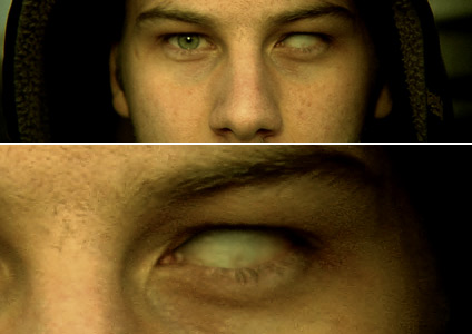 I'm finishing up a fun tutorial for creating some missing eyeballs. I'm sure you could also make the eyes black with this technique or even change the eye color. With a little work an empty eye socket might be possible as well.