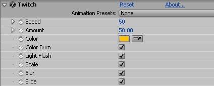 You are seeing an actual screen shot of the new Video Copilot plugin Twitch. This little idea has come a long way and is really starting to sizzle. Initially an FFX preset for After Effect only, the concept is now a real Plug-In!