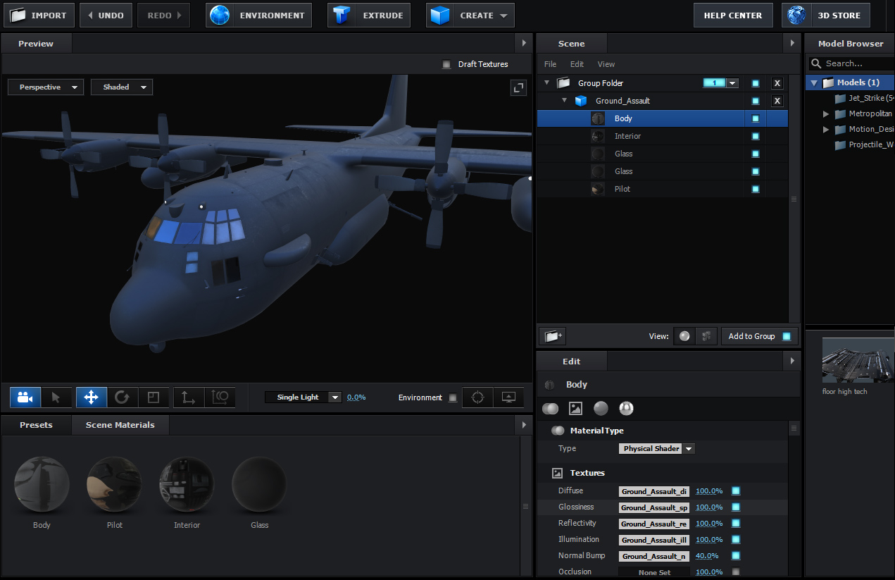 I wanted to try to create something large-scale with Element 3D. And it can be pretty tricky! Having lots of smaller details in addition to large details helps give objects a sense ofscale. I started with some pistons from the Motion Design 2 collection. Then added things like pipes and mechanical components at various scales to give the object more small details. Also adding some normal map textures with various details helps give simple objects more greebles!