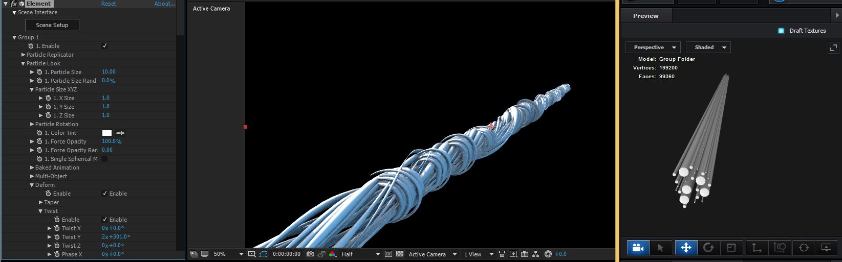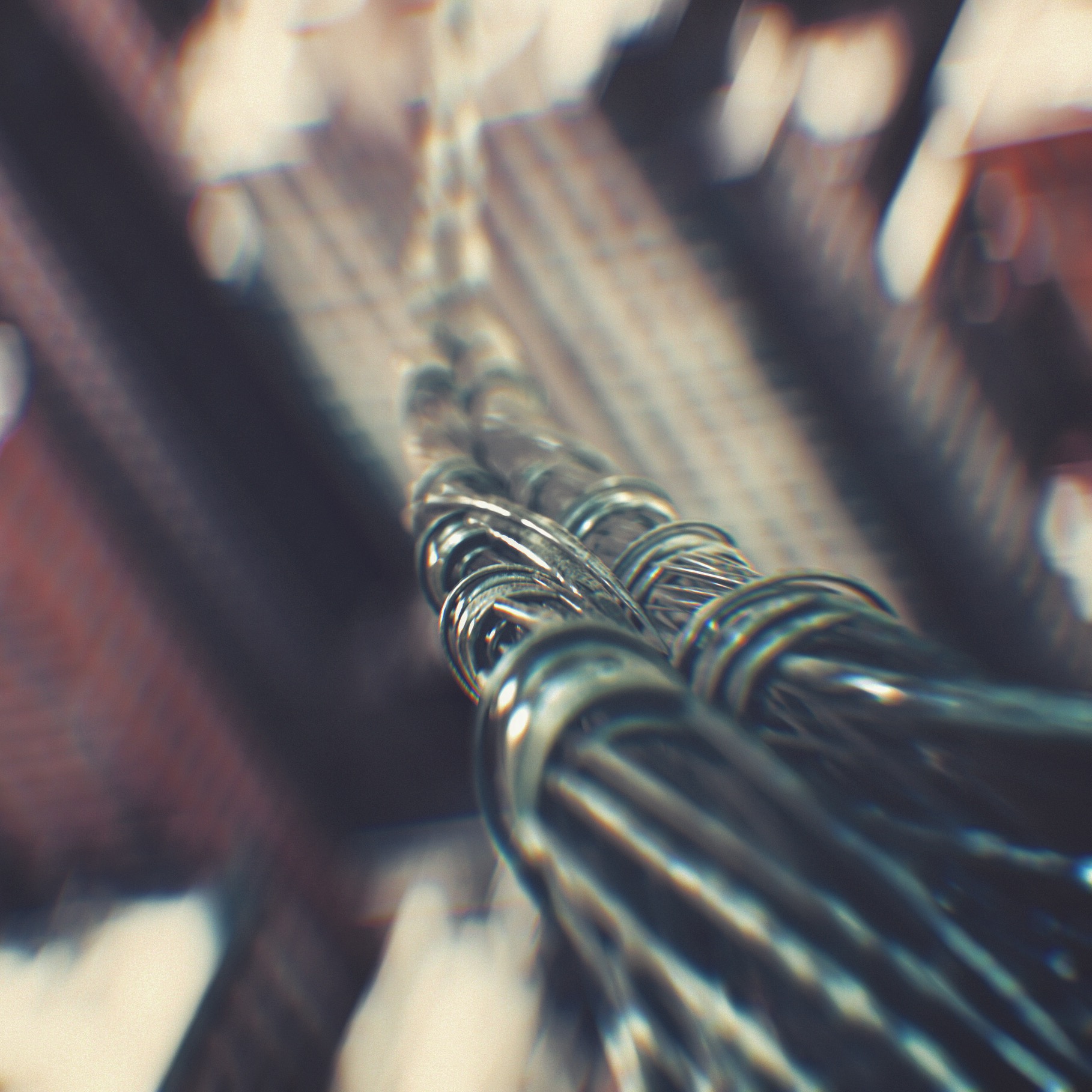 To create the wire I built a simple group of wires using several cylinder primitives. Then using a second group I created some smaller twists and scattered them along the line. In order to add a twist to the entire object I used the UTILITY export option to export and OBJ and re-import it as a single object. Then used the bend option. Making sure to turn on "Dynamic Deform" in the objects surface normal's.