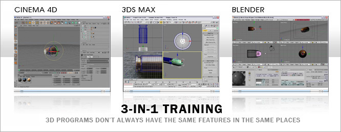 As you begin the lessons you start in After Effects. Then the lessons move on 3D animation. Now you can choose to follow along with Cinema 4D, 3Ds Max or Blender. Once you complete the 3D portion you will return to After Effects for finishing. No matter what 3D program you use, the resulting render is incorporated in After Effects and the final compositing begins. It is also recommended to check out the workflows for all of the programs to see which ones work best for you.