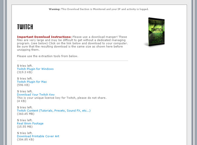 1. After you log-in to the download area select the Twitch Product from the bottom and you will see this download page.
