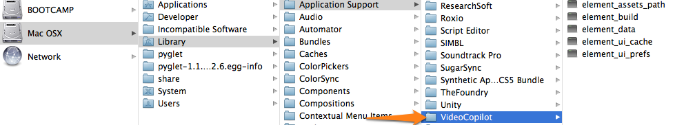 Delete the following folder: Library/Application Support/VideoCopilot Library is a hidden folder so you might need to go to Finder menu 'Go' and use 'Go to Folder...' and type the path in. (click screenshot below to see full path) After deleting the folder, run the full Element 3D installer (not the patch) and license as normal by entering your download account email and password. Or, if necessary the manual license method. If the Video Copilot folder is not present then install the full Element 3D installer.