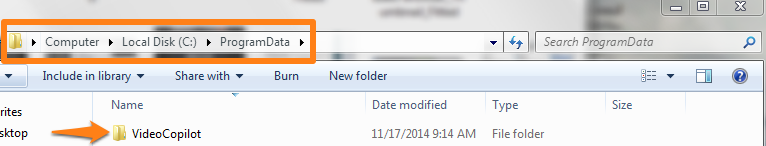 Delete the following folder: C:/ProgramData/VideoCopilot C:/ProgramData is an hidden folder so you might need to type it in the Windows Explorer address bar. After deleting the folder, run the full Element 3D installer (not the patch) and license as normal by entering your download account email and password. Or, if necessary the manual license method. ***If you do the manual license method, you can't use any old license or license request files that were created before deleting the above folder*** If the Video Copilot folder is not present then install the full Element 3D installer.