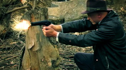 How do i get the gun to cock back like it shows in the finished shot he showed us at the beginning?